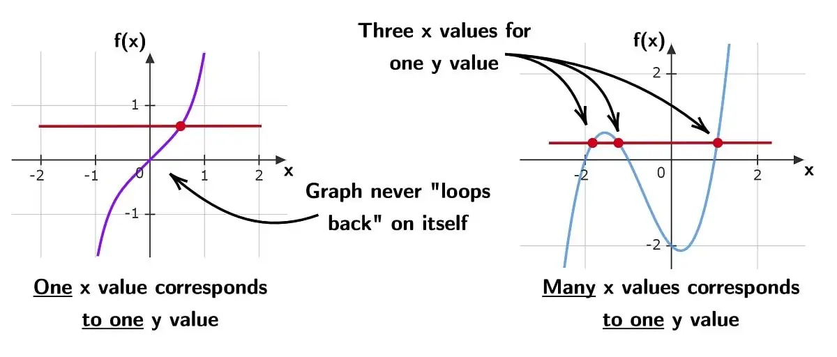 If given a visual of a graph, use a ruler or straight edge to create a horizontal line. Slide the line up and down the graph. If the straight edge only touches one point at a time, the function is one-to-one